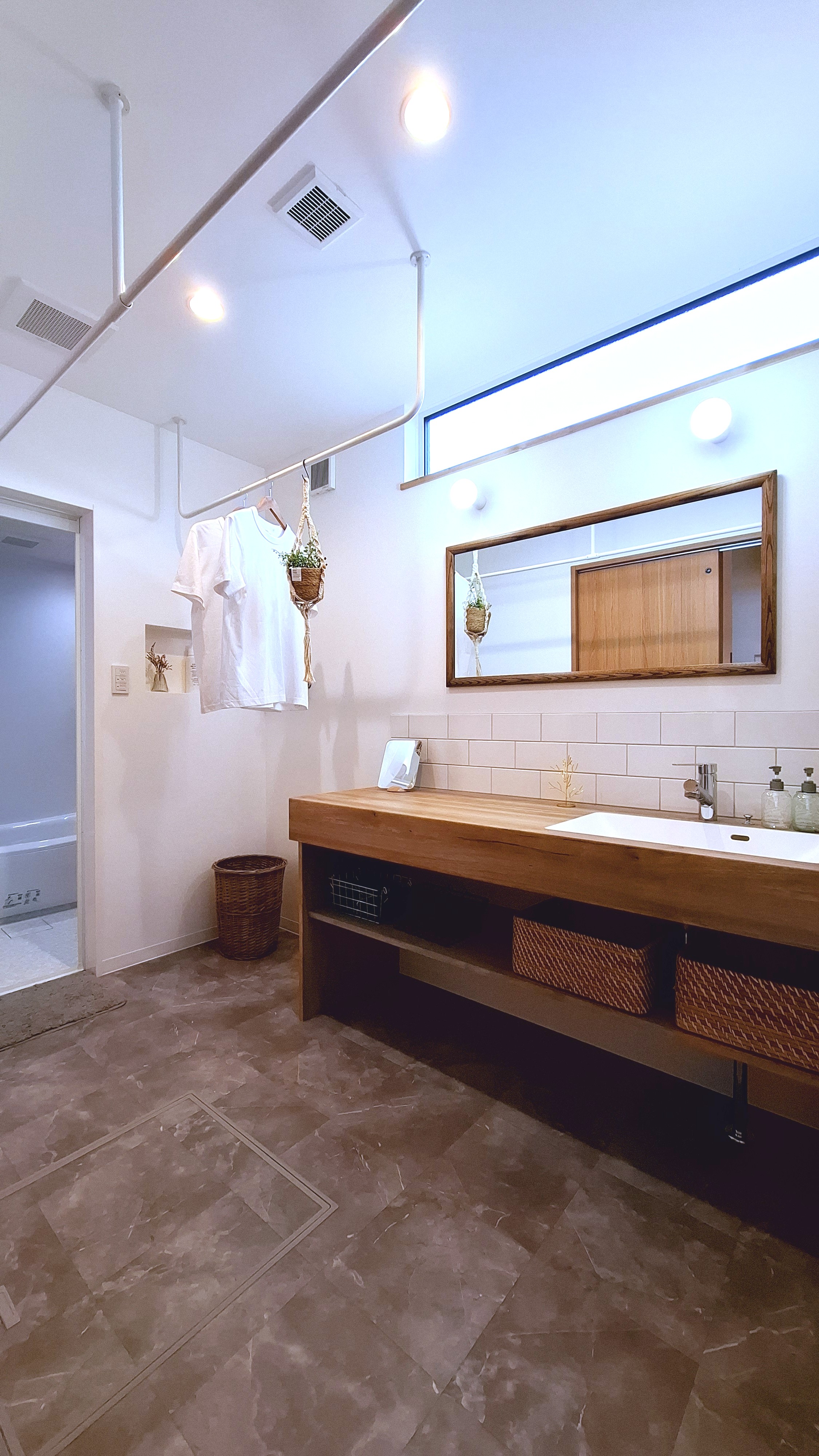 洗面室と脱衣室を一緒にすることでゆとりのある広さになり、お子さまとの入浴準備や入浴後もスムーズに♪