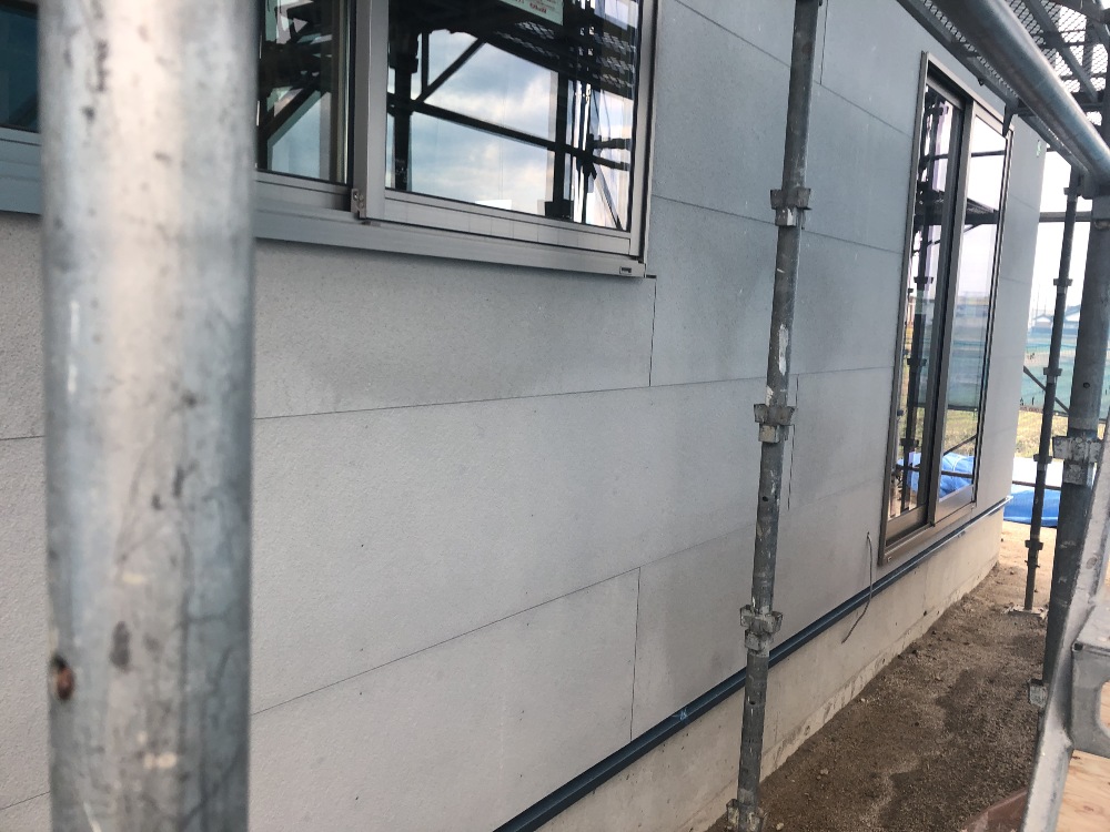 外部用の専用ボードを張っていきます。いよいよ塗り壁の施工が始まります。
