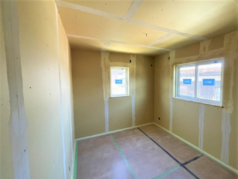 石膏ボードも貼られ、いよいよクロス工事となりますが、その前に…石膏ボードの継ぎ目をパテで埋めていきます。クロスを綺麗に仕上げるための大事な工程です!