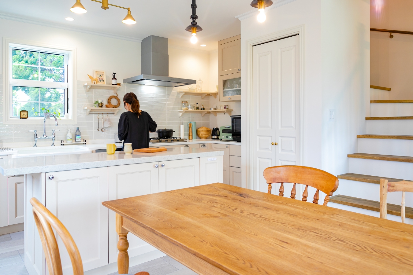 奥様:たくさんこだわりが詰まっているので選び難いですが 一番はアンティークドアですね! 他にもキッチンからリビングを見た景色や、土間も気に入っています。土間のアイデアは海外のインスタグラムを参考にしました!いずれは外につながるようにウッドデッキをつけたいなと思っています!