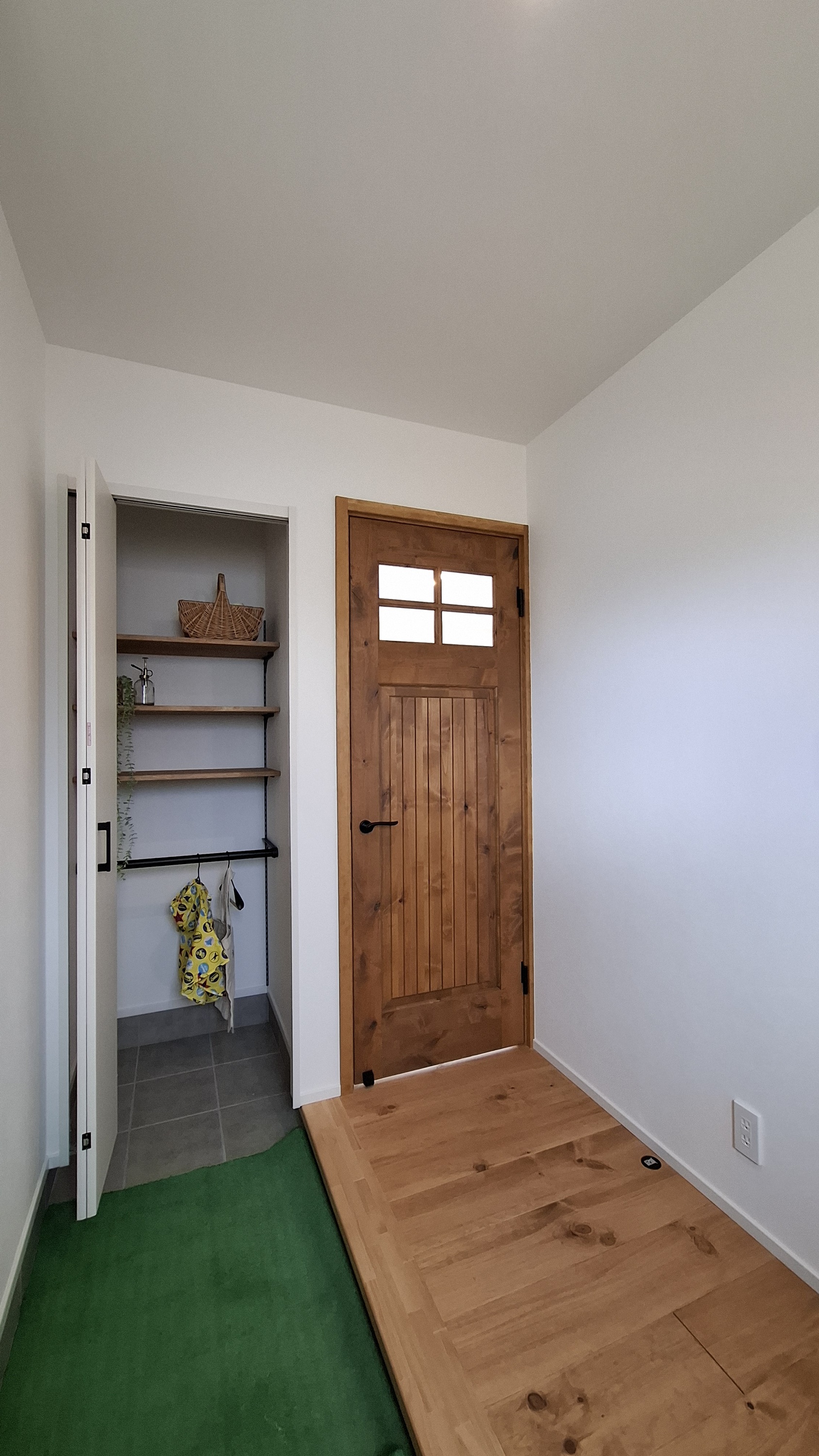 玄関横の土間収納は濡れたレインコートや傘なども掛けることができて便利です。